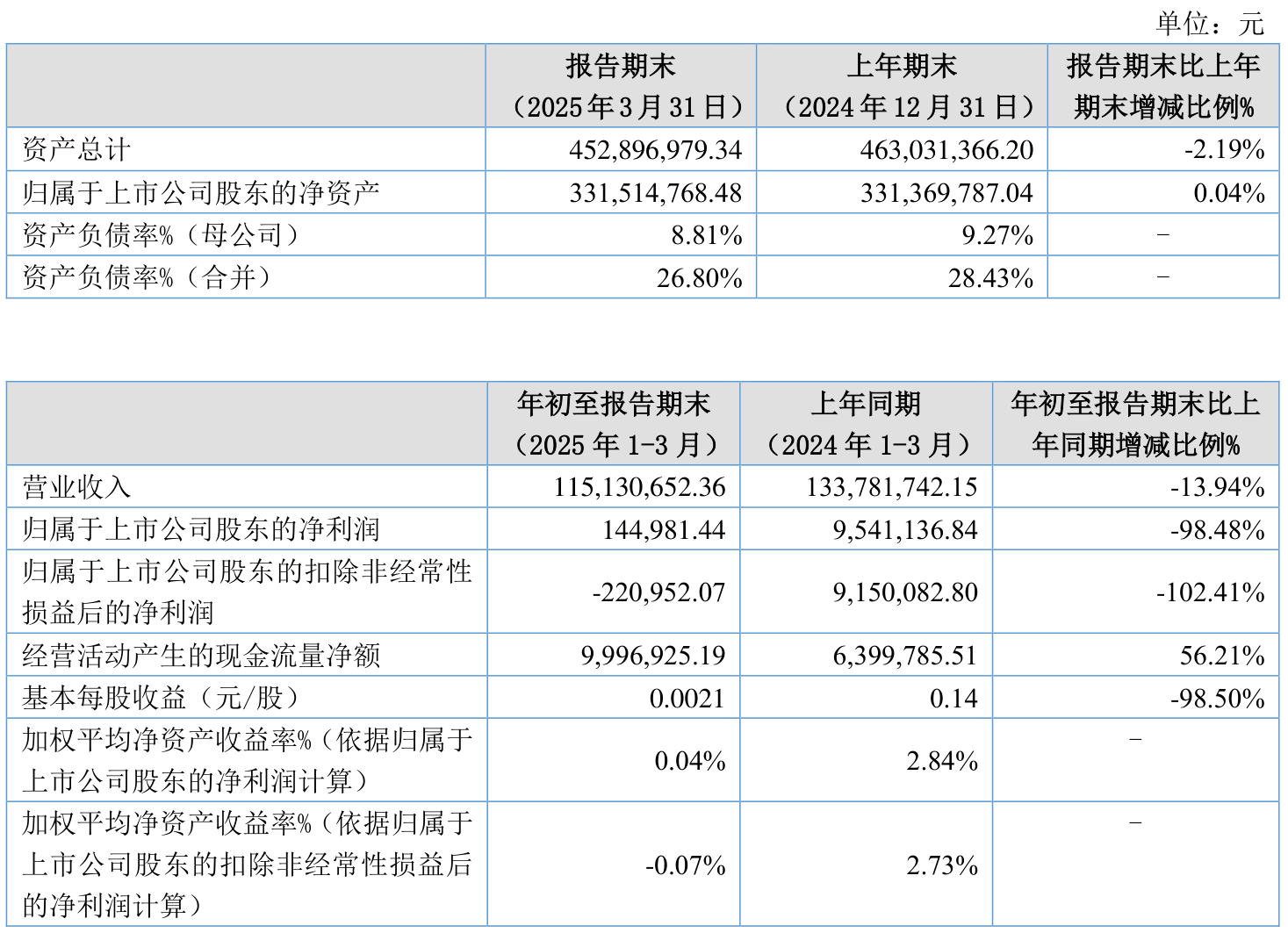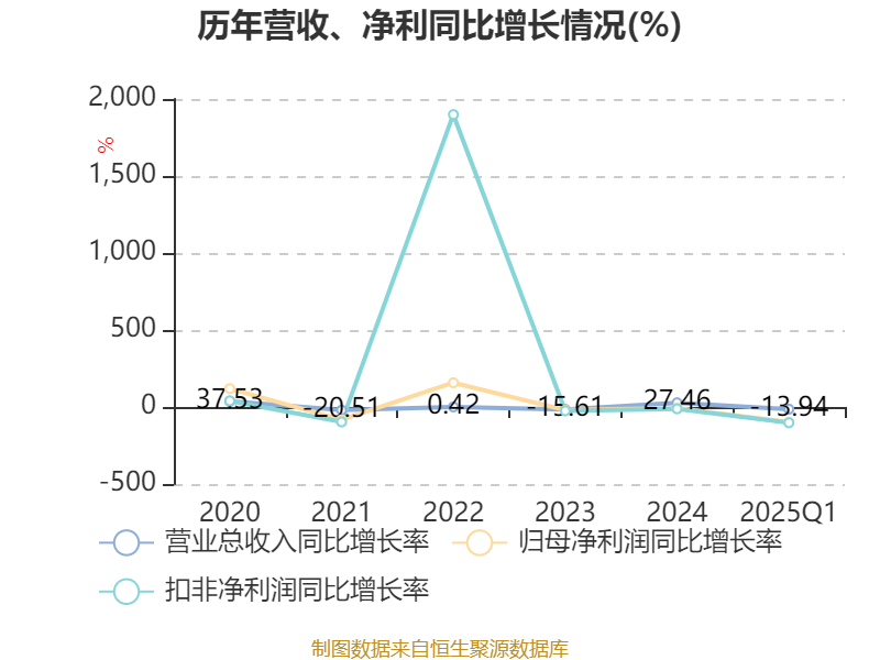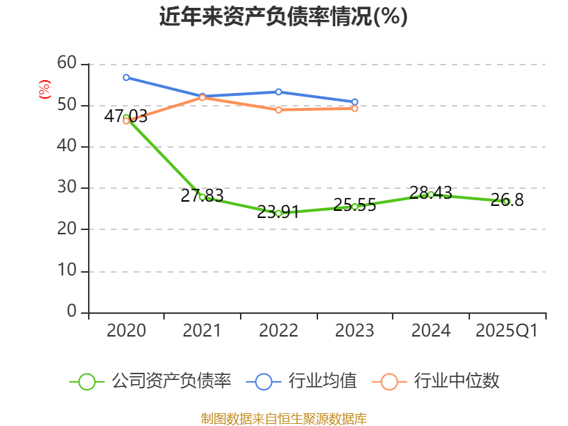 负债重大变化方面,截至2025年一季度末,公司应付票据及应付账款较上年末减少26.36%,占公司总资产比重下降4.09个百分点;长期借款较上年末增加302.03%,占公司总资产比重上升3.97个百分点;应付职工薪酬较上年末减少48.62%,占公司总资产比重下降1.39个百分点;一年内到期的非流动负债较上年末增加12.1%,占公司总资产比重上升0.18个百分点。