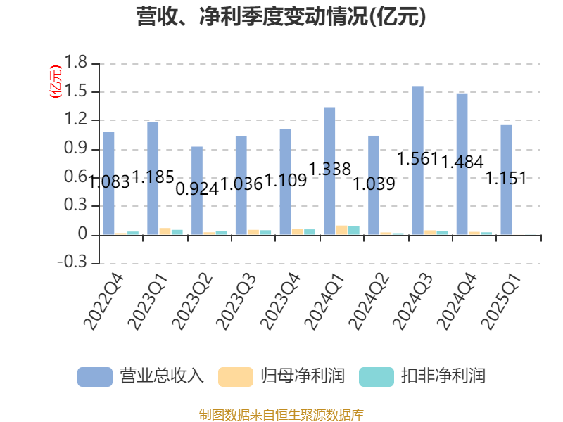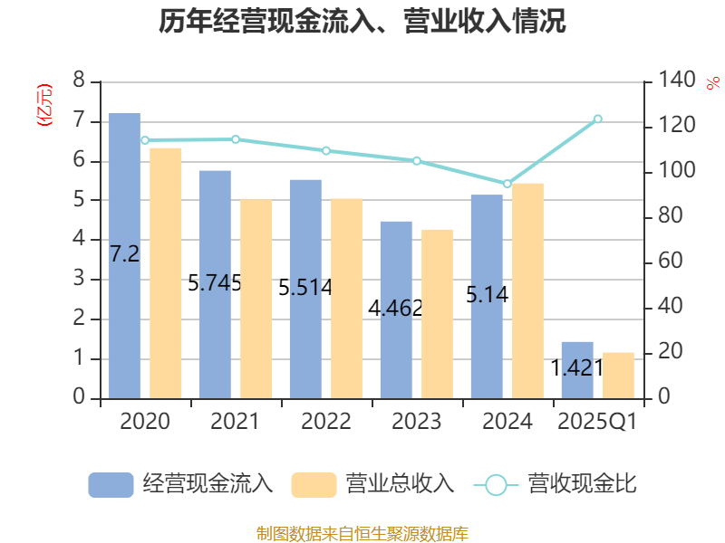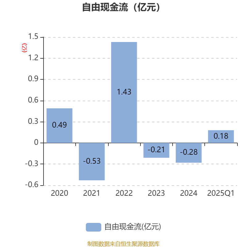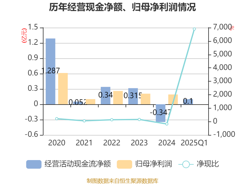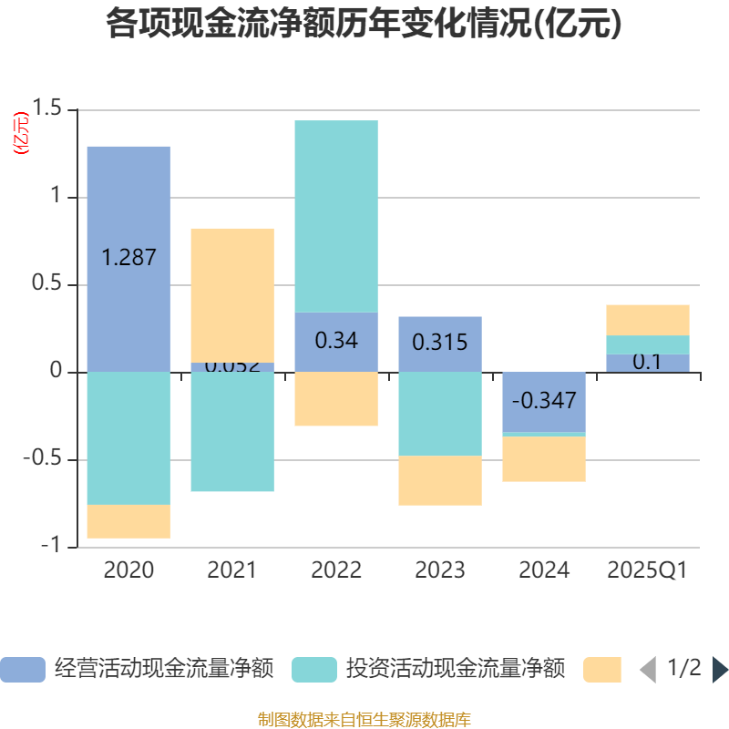 截至2025年一季度末,公司经营活动现金流净额为999.69万元,同比增长56.21%;筹资活动现金流净额1742.08万元,同比减少1353.52万元;投资活动现金流净额1079.43万元,上年同期为-32.42万元。