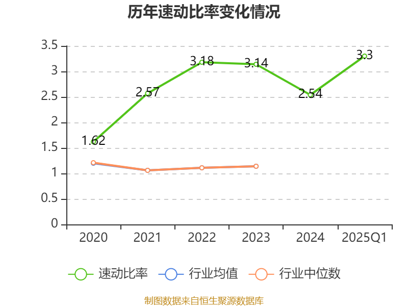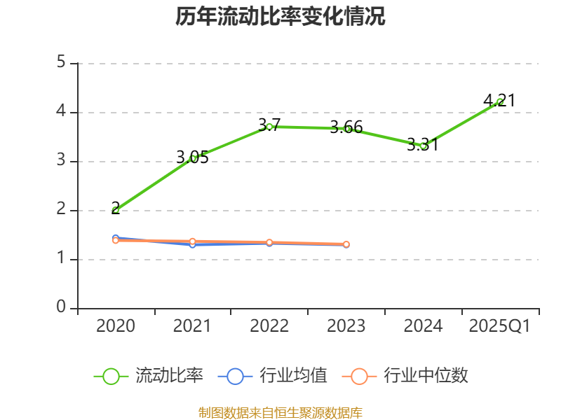 2025年第一季度,公司流动比率为4.21,速动比率为3.3。