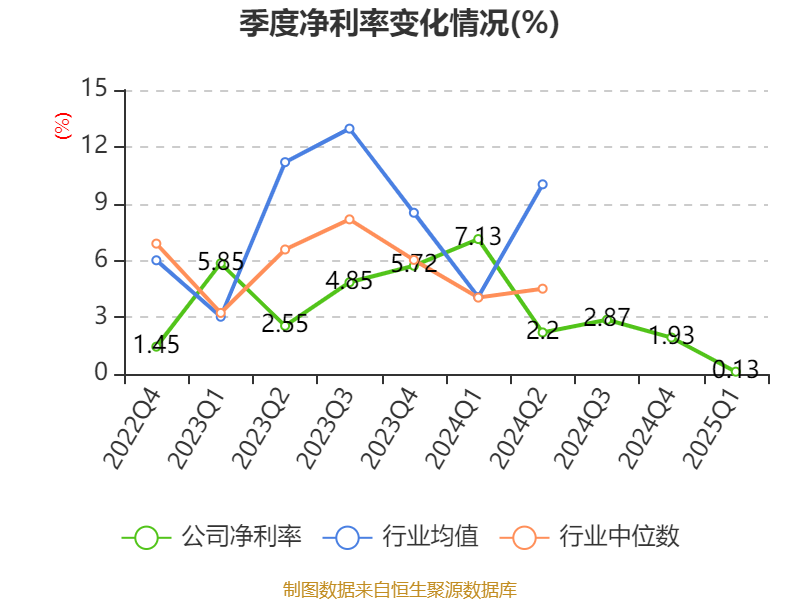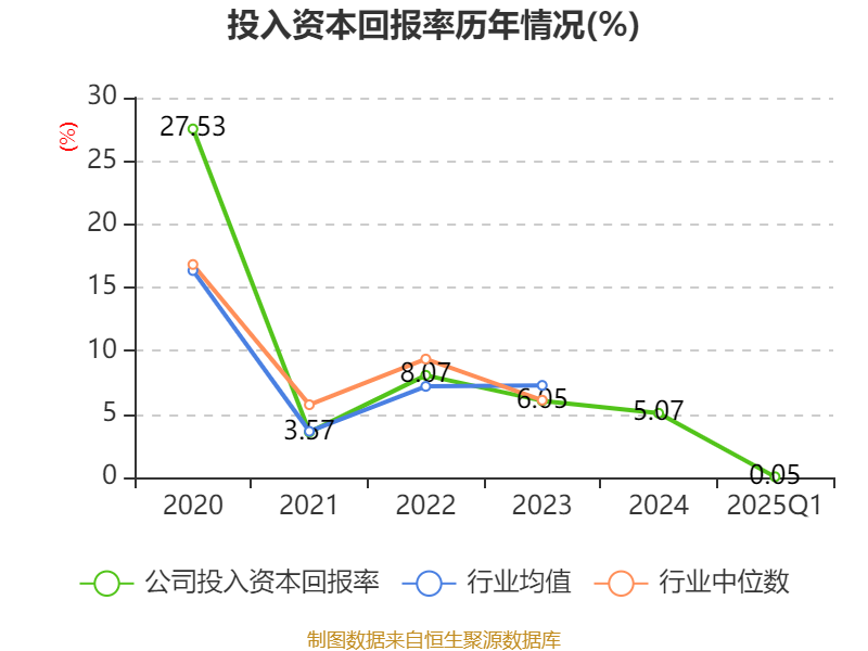 盈利能力方面, 2025年一季度公司加权平均净资产收益率为0.04%,同比下降2.8个百分点。公司2025年第一季度投入资本回报率为0.05%,较上年同期下降2.68个百分点。
