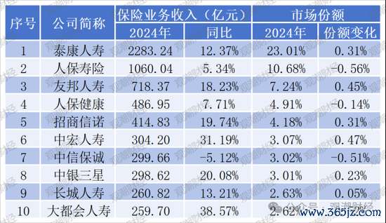 此外,市场份额超5%险企还有人保寿险、友邦人寿,分别占比10.68%、7.24%。