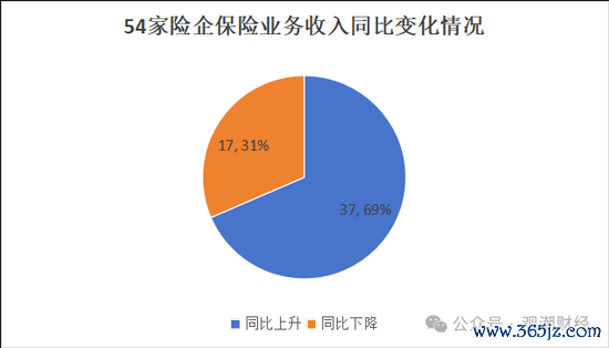 2024年54家以保险业务收入为披露口径的人身险企中,实现保险业务收入正增长的人身险企有37家,占比近七成;保险业务收入下滑险企有17家,占比31%。