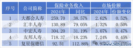 份额增长TOP5:大都会、汇丰、中宏、友邦、复保在列