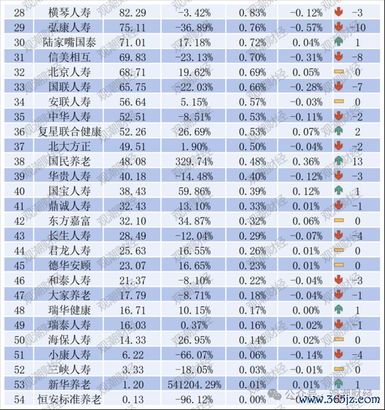 另外,信美相互、国联人寿、泰康养老等排名也均有所下滑。