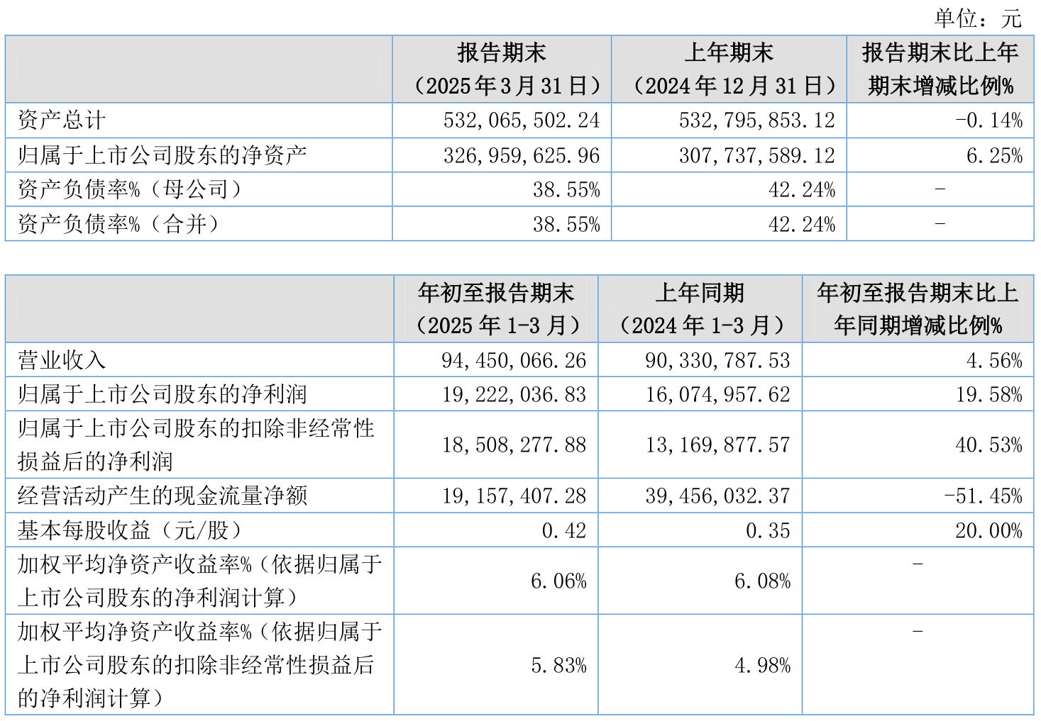 盈利能力方面, 2025年一季度公司加权平均净资产收益率为6.06%,同比下降0.02个百分点。公司2025年第一季度投入资本回报率为5.54%,较上年同期下降0.12个百分点。